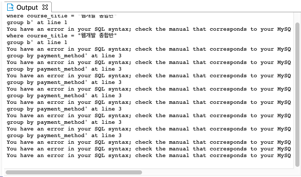 특정 강의를 듣는 학생의 결제 수단별 수량을 정리하는 코드를 만들어야 하는데,