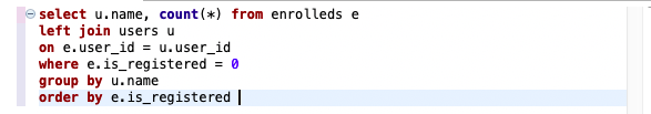 is_registed = 0 사람 수를 세야 한다고 하니, where 조건을 쓰지도 않고 count에다가 일단 넣었다. 잊지 말자 빌드업.